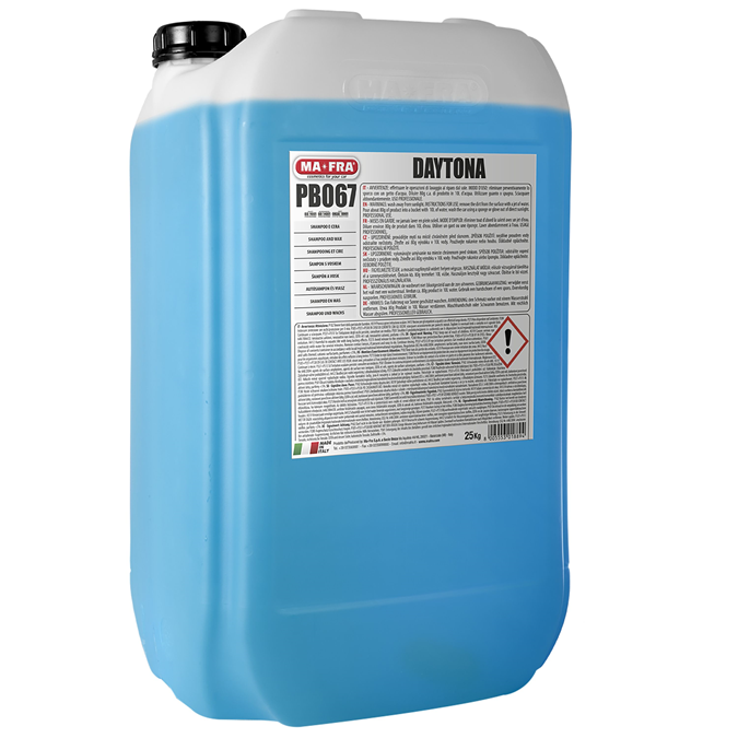 Shampoo und Wachspolitur. Anwendungsbereich: Daytona wäscht, verleiht Glanz und hinterlässt eine schützende Schicht auf den behandelten Oberflächen in einem einzigen Durchgang. Vorteile: Das Shampoo enthält pflanzliche Wachse mit hohen Grip und ermöglicht maximalen Schutz und Glanz, auch auf Bussen die nicht mehr neu sind. DAYTONA schützt die Carrosserie und erhält die Vitalität der Originalfarben ohne Rückstände auf dem Glas zu hinterlassen. Anwendung und Verdünnung: Oberflächenschmutz mit Wasser entfernen. Einen Teil des Shampoos in einen Eimer geben und Wasser hinzufügen. Danach den Bus wie gewohnt waschen und gründlich mit Wasser abspülen. Die Arbeit sollte im Sonnenlicht durchgeführt werden.