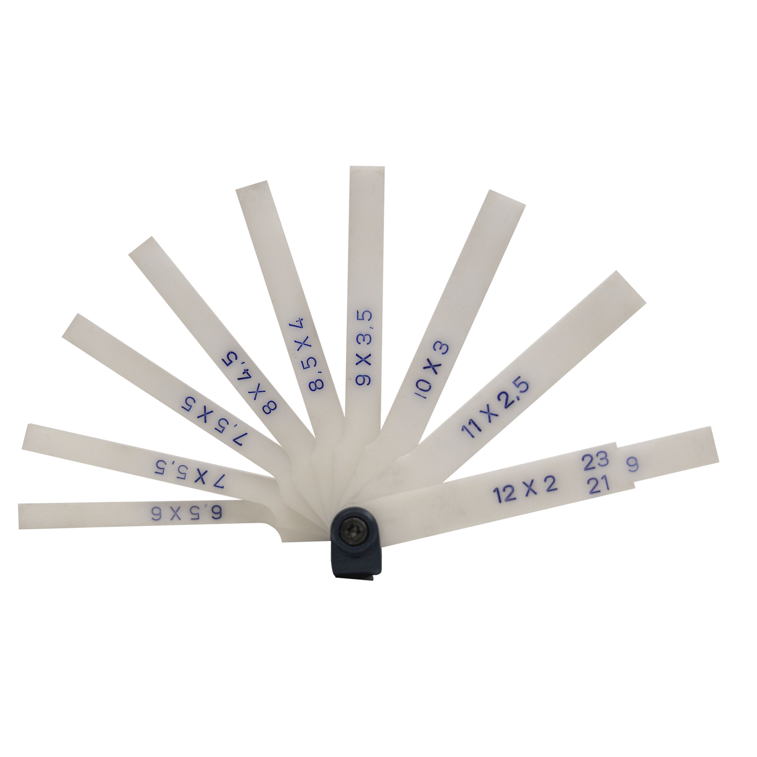 Lors de la pose d’un nouveau pare-brise, il est important de respecter le bon écartement entre le bord de toit ou le montant avant et le bord de verre du pare-brise. La nouvelle vitre devrait être montée soit sur la base des dimensions indiquées par le constructeur du véhicule, soit sur la base des dimensions du pare-brise monté en usine. Pour mesurer l’écartement, cette jauge d’épaisseur est utilisée. Elle permet de déterminer un écartement de 1 à 12 mm et de positionner le nouveau pare-brise précisément.
