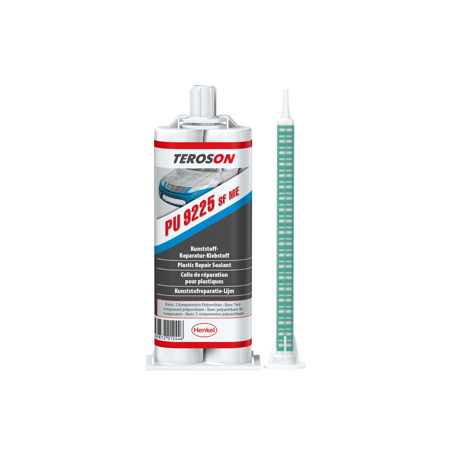 Colle noir 2K base PU pour réparer tout types de plastique automobile, en utilisant le primer Terokal 150. Peut être poncé après quelques min. Colorable Temps de manipulation pour Terokal 9225 env. 2 à 3 min.