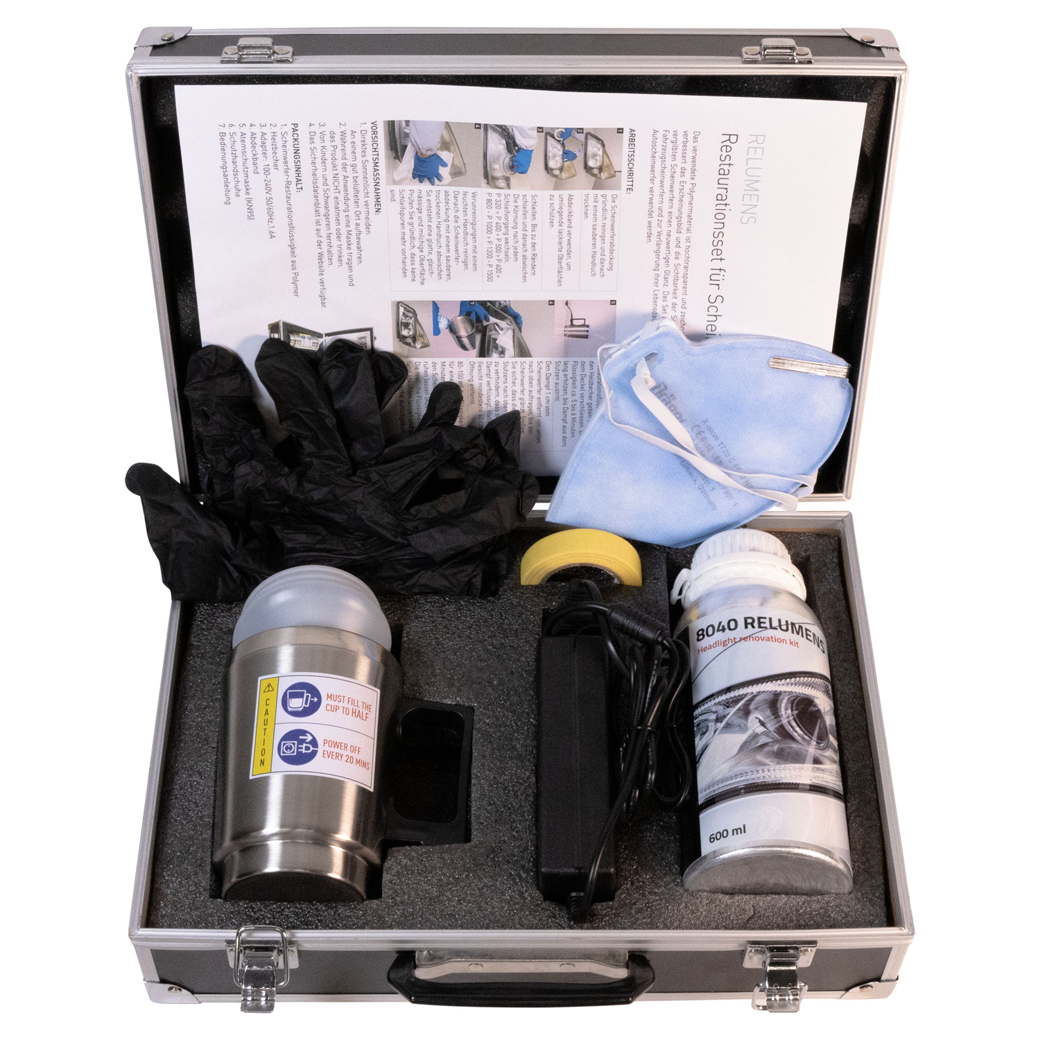 Ce revêtement polymère permet de traiter de manière hautement transparente les coques de phares mates et jaunies par le temps. Le matériau polymère appliqué est très transparent et se distingue par sa forte adhérence. Le kit peut être utilisé pour appliquer un nouveau revêtement et prolonger la durée de vie de toutes les coques de phares en plastique. Les avantages sont nombreux : - il n'est pas nécessaire de démonter les phares pour les traiter. - application facile - pas d'inclusion de poussière - temps de séchage court (env. 15 minutes). Le kit contenu: - mallette - récipient à vapeur avec bec verseur - liquide polymère 600ml - bloc d'alimentation - ruban de masquage - 2 masques de protection respiratoire - 2 paires de gants - mode d'emploi