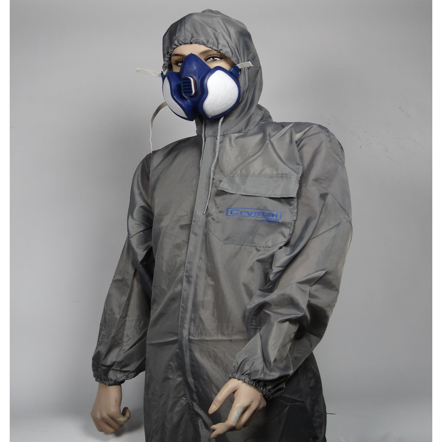 Combinaison réutilisable enrobée de téflon - matière: 100% polyester sans silicone, non pelucheux – catégorie PSA I – anti-saleté et imperméable grâce au revêtement original de téflon Dupont – respirant grâce au système AVS, ouverture de ventilation sur le dos et également sous les aisselles - 1 poche sur la poitrine, 1 poche velcro à l’arrière - col haut avec velcro - capuche avec cordon de serrage - fermeture éclair à 2 sens avec rabat de protection – elastiques à la taille, aux poignets et aux chevilles - lavable à 30 °C ou nettoyage chimique
